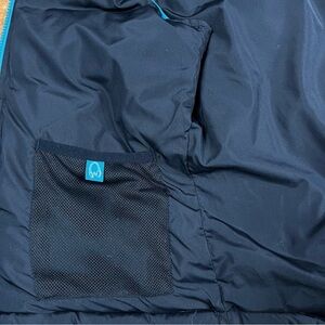 Aeropostale vintage 2000s down fill puffer vest in a bright sky blue, nice quality fill, full front zip, zipper outer pockets, 2 mesh inner pockets, 70s 80s throwback vibes