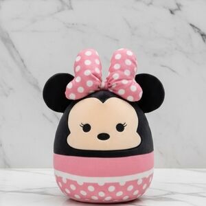 Adorable plush toy featuring a pink polka dot bow. Perfect for cuddling and display.