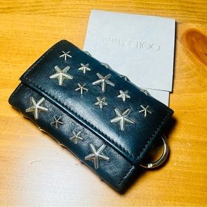 EUC Jimmy Choo Starred Studded Black Neptune Leather 6 Key Ring Case