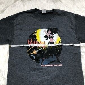 SO cool! This is a Howlimg Tongue band t-shirt with Vivian the vampire comic book type graphic on the front! So badass and edgy! Pair with blazer and boots to make this shirt edgy chic!