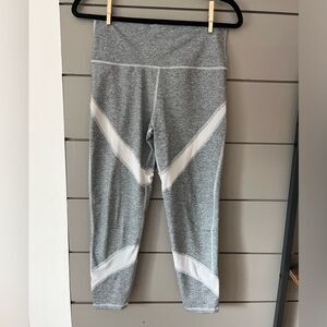 Aerie chill play move capri leggings size Large grey with white mesh stripes