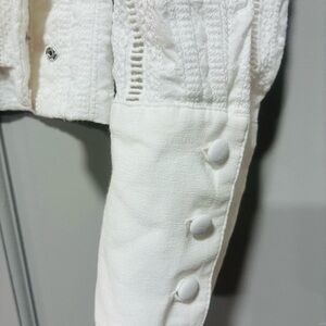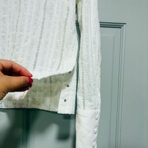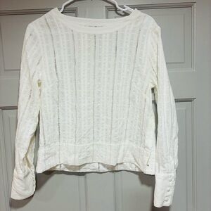 Frame Blouse Women Size Medium White Textured Button Cuffs Pullover Round neck