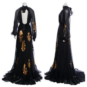 Djaba Diassamidze Mariana Gold Applique Gypsy Drss