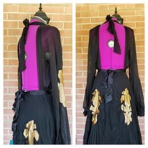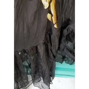 The dress is new with tags. A couple of gold appliques are peeled off at corners due to the dress being hand made.