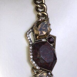 Bold, sculptural, and beautifully eclectic — this Mixed Gemstone Geo Statement Necklace from Chloe + Isabel is a true showpiece. Designed with an array of richly faceted stones in deep plum, smoky quartz, earthy greens, and warm ambers, each gem is framed in sparkling pavé and set within modern geometric bezels for a striking multi-dimensional effect.