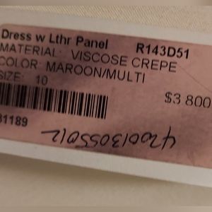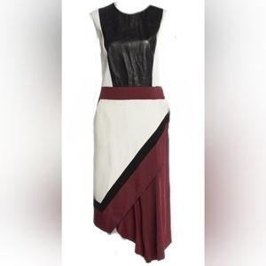 BLACK LEATHER, COLOR BLOCK NUTRAL BURGUNDY SILK LINED RUNWAY DRESS FROM FAMOUS J. MENDEL know for making gown and dresses for the read carpet, first lady's, queen and princess - alway high quality and fine craftsmanship.