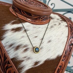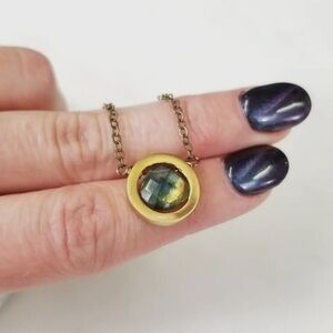 Handmade Genuine Labradorite Circle Bezel Pendant – Brass Necklace 18–20” USA
