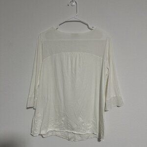 J. Jill White Scoop Neck Button Top 3/4 Sleeve Embroidered Hem Size Small