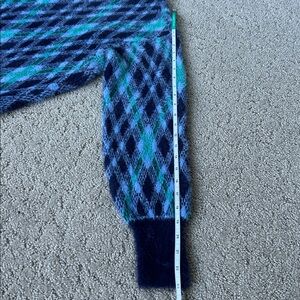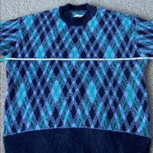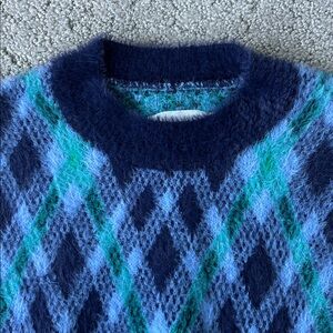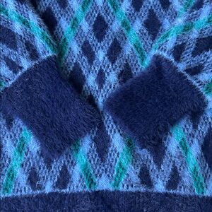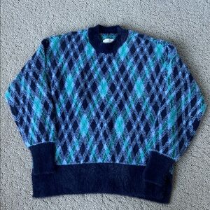 Aerie Flurry Oversized Argyle Sweater Fuzzy Winter Cozy Blue Crewneck Top XXS