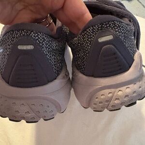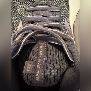 These shoes are in really good use condition, other than the inside of the heels have worn places and you can see that illustrated in the last two pictures. This is common for Brooks. Lots of life left in these shoes!