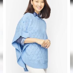 Talbots Pointelle Lattice Round Poncho Light Blue Size X