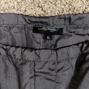 Brand new with tags, ED Hardy parachute style pants. Dark gray color with cute accents and designs. Has side pockets and bungee style cords on the waist and bottoms to adjust. Size XL. See all pictures for description and measurements. Price is firm, look at what other sellers are selling for.