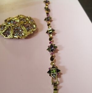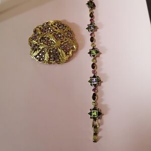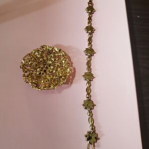 Gold color Vintage bracelet and vintage Sarah Coventry brooch