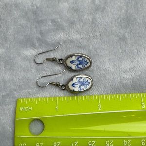Handmade Ceramic Pierced Dangle Earrings Silver Tone Fleur di lis