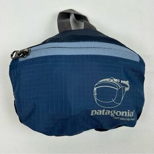 *EXCELLENT CONDITION* Patagonia lightweight mini hip pack in blue. Features three zip-close compartments/pockets. Packs down and stows into the small inner pocket for storage/travel.