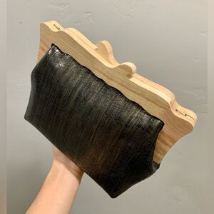 Handmade Genuine Cowhide Embossed Leather Wooden Frame Purse & 2 Strap Styles