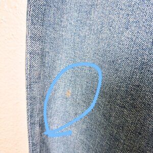 • Flaws: distressed hem, one belt loop is mended, only visable on inside, not visable when wearing, see last two photos, very small spot left leg front - see circled in photo.