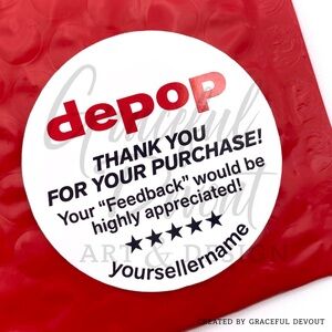 Depop - Thank You For Your Purchase! 2" (inches) Round Stickers [GD158-48] Feedback, 5 Star Review, Tag and Labels, Seller Shipping, Packaging.