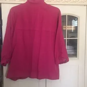 3/4 length sleeves! Front pockets, drawstring at sleeves! EUC no stains or rips! Only thing is the hood is missing 🙁 I never wore the hood and can’t locate it!
