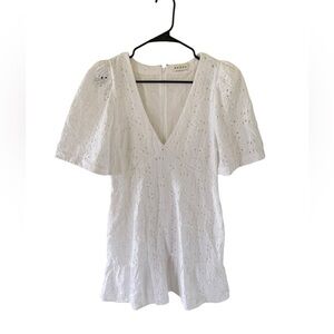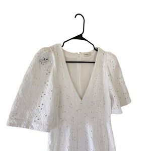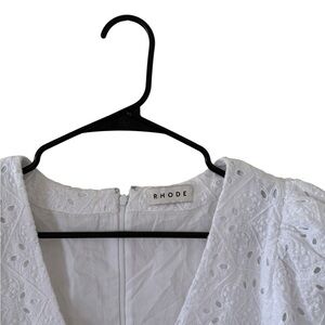 Adorned with eyelet embroidery, Rhode's Mariana minidress is styled with dramatic sleeves and a fluted hem.