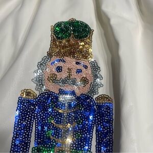 Chic cream dress by Fantastic Fawn. Adorned with vibrant sequined nutcrackers.