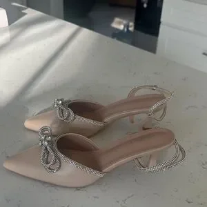Elegant Cream Heels with Rhinestone Accents