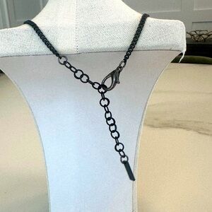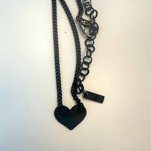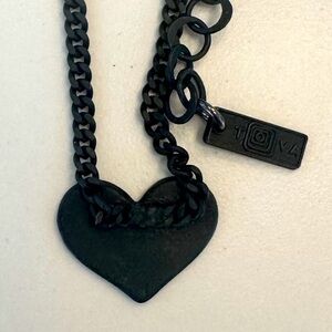 Sweet and edgy TOVA Black Heart Necklace in Black Smutt. A pretty heart made edgy with fabrication in black smutt finish. Note teeny tiny white spot on heart in 4th photo, with which the necklace was first purchased direct from TOVA.
