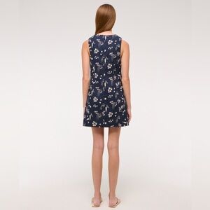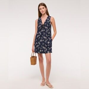 Abercrombie & Fitch Linen-Blend Tie-Front Mini Dress in Navy Patten 🍷🍝🍅