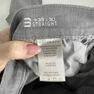 Mott & Bow Mercer Straight Leg Jeans Mens 35x30 Light Gray Stretch Twill Denim