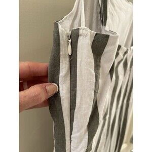 C & C CALIFORNIA Green White Striped Linen Jumpsuit with Front Buttons Medium