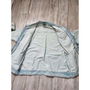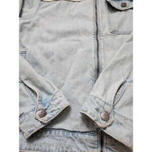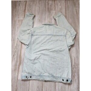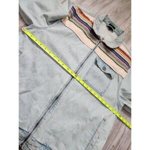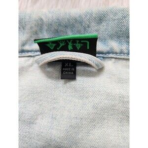 LRG Mens Earth Lessons Rainbow Patch Denim Jacket Light Wash Blue Button Up XL
