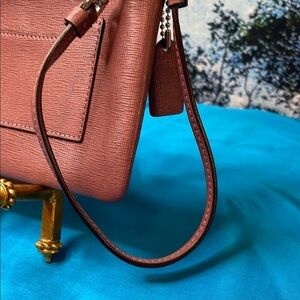 This Coach Leather wristlet in a vibrant dusky pink hue combines elegance and practicality, featuring a sleek wrist strap for easy carrying. Its minimalist design and quality craftsmanship make it a versatile accessory for any occasion. Roomy interior is cloth and features 2 card slots. Very clean.