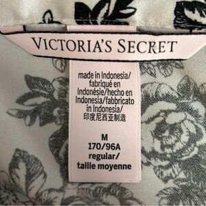 • Color/Print: Silver satin with black floral toile pattern and subtle red VS script accents