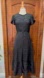 Chic black midi dress with button-down front. Features short sleeves and tiered skirt. Perfect for versatile styling.