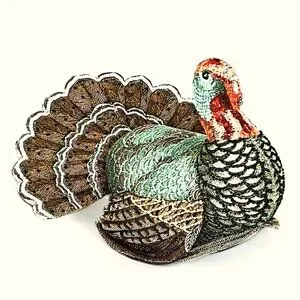 NEW John Derian X Target 2024 Beaded Plush Turkey Pillow Thanksgiving 16X15”
