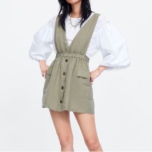 ZARA Olive Green Sleeveless Button Front Mini Dress - Size M