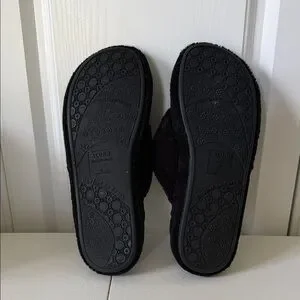 Cozy Acorn Spa Thong black slippers. Soft and comfortable. Perfect for lounging. (Sz 8-9). Please see all photos