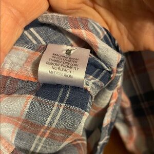 Plaid Button-Down Shirt in Blue and Peach