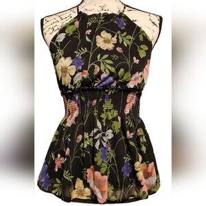 Like new - Spaghetti Strap floral blouse with an elastic waist, single back button, and double layer.