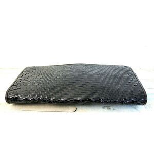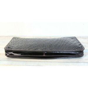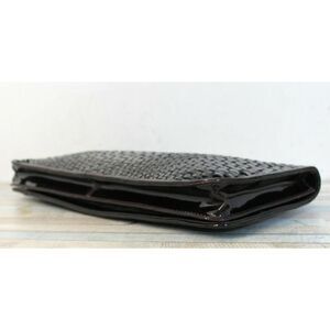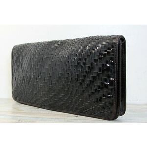 7.2"x14.5" Cole Haan PATENT BROWN WOVEN GENUINE LEATHER FLAP LRG CLUTCH HANDBAG