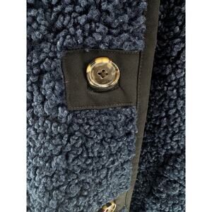 J.CREW Navy Blue Teddy Sherpa Coat with Collar & Pockets - Warm Cozy Luxe! Sz L
