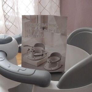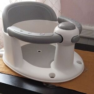 Ensure your baby's safety and comfort during bath time with this stylish gray and white bath seat. Designed for stability and ease of use.