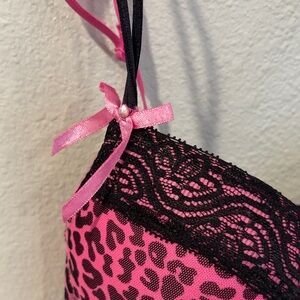 Pink Leopard Print Bra with Black Lace Trim