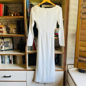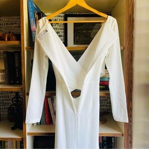 Long-sleeve evening dress topped with a cutout side detail.