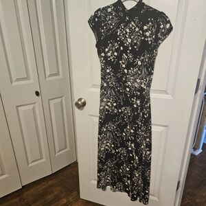 Chic black blouse with white floral pattern. Elegant design for any occasion.