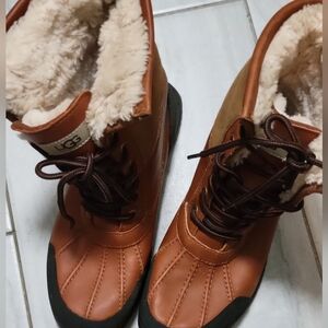 UGG-Vibram Women's Tan Leather and Black Lace-Up Winter Boots- Sheepskin SZ 7