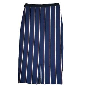 Rachel Roy Pencil Skirt Midi Skirt High-Rise Striped Navy Blue Red Size XS NWOT