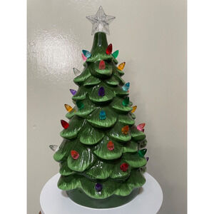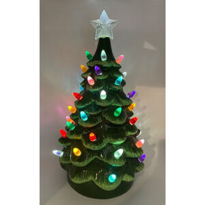 Vintage Lighted Tabletop Ceramic Christmas Tree -Battery Operated 14" Tall