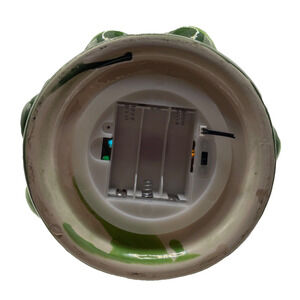 This amazing lighted Christmas tree is in good condition. It has no cracks, no chips. However, it shows signs of wear like scratches, glitter missing from the star and it is also missing the battery compartment lid. Please refer to pictures.