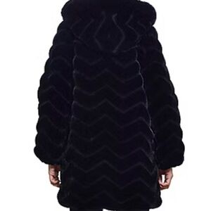 Chic black teddy jacket. Soft and cozy. Ideal for cool weather. Gallery Womens Faux Fur Hooded Coat